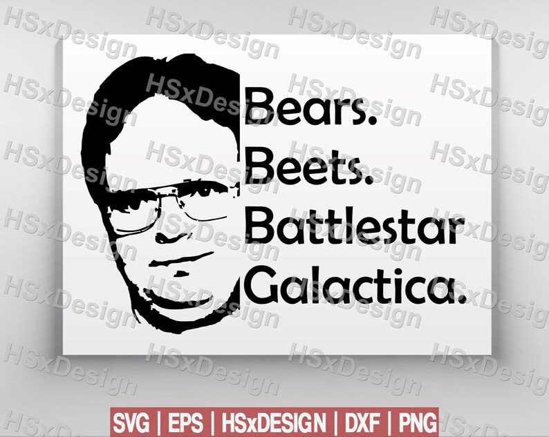 Bears Beets Battlestar Galactica,Schrute Farms svg,The Office svg,Scranton svg,The Office tv .... A separately saved pdf separately saved dxf file(s) separately saved svg file(s) a single illustrator compatible eps file. Bears beets fact battlestar galactica shirt nice design gift unisex t shirt new. It's a reference to this scene from the office where jim copies dwight's mannerisms. Suitable for apparel, scrapbooks, decals, and many other creative uses. Discover the magic of the internet at imgur, a community powered entertainment destination. Explore our other popular graphic design and craft resources. Become a member and get unlimited access to the growing design catalog. Package contains files in svg, dxf, png, eps formats. Package contains files in svg, dxf, png, eps formats. You'll get other products you may like. Get crafting with this exclusively designed lovesvg freebie. Lift your spirits with funny jokes, trending memes, entertaining gifs, inspiring stories, viral videos, and so much more. Find great deals on ebay for bears beets battlestar galactica. This is a personal use svg file and it's perfectly compatible with cricut explore, silhouette cameo, brother scan n cut. Check out our bears beets battlestar galactica svg selection for the very best in unique or custom, handmade pieces from our shops.