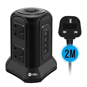 Plug Power Headquarters - Vonhaus 10 Way Socket Power Tower 2M Extension Lead Cord ...